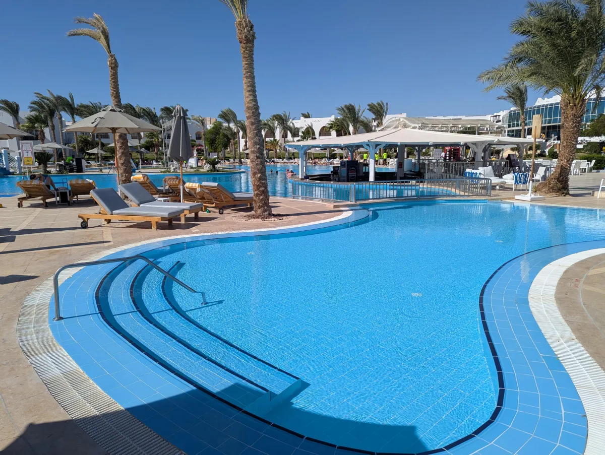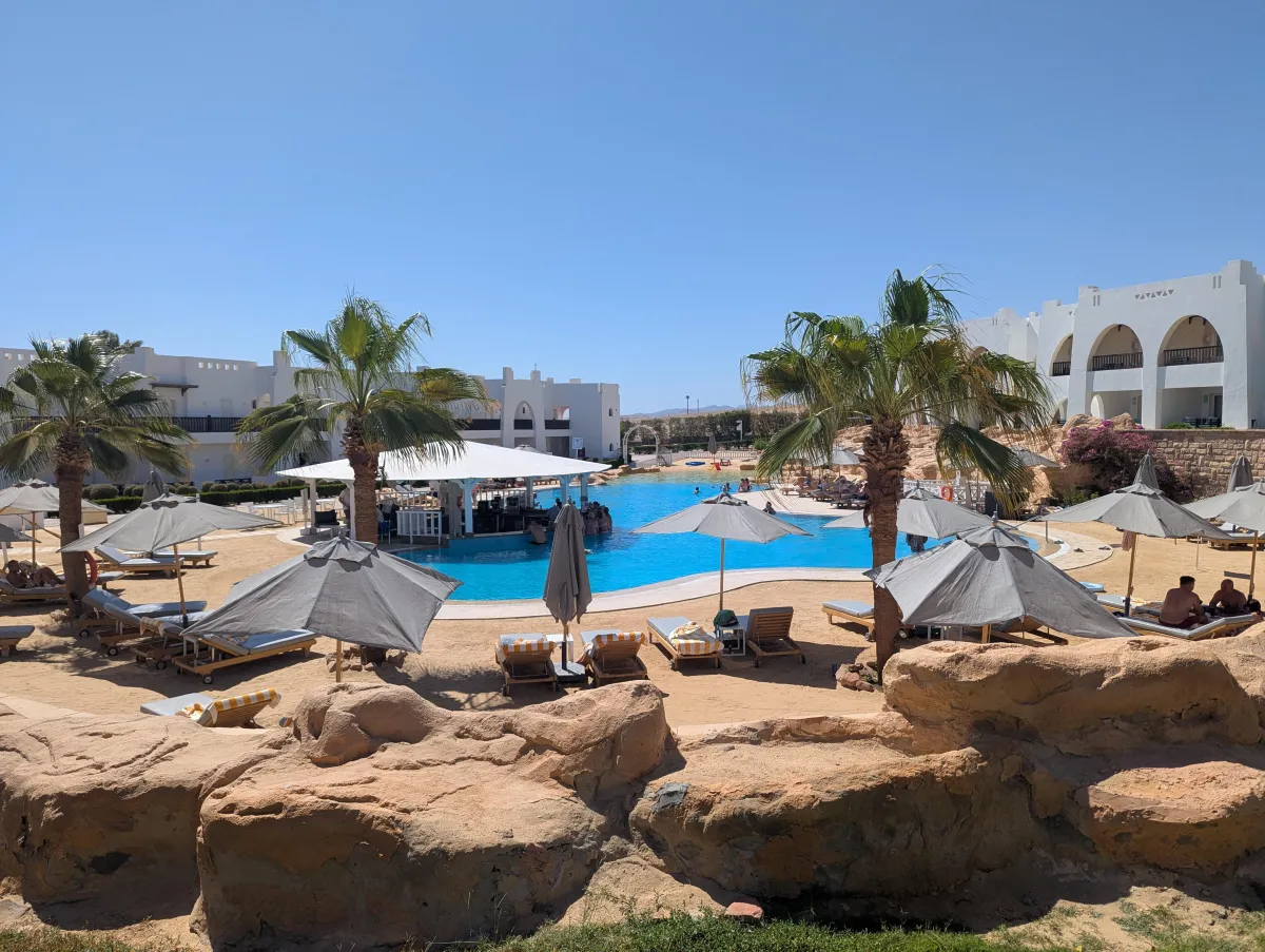 Schatten & Schutz: Sowohl an den Pools als auch am Strand gibt es genügend Sonnenschirme für Schatten. Der Spielplatz ist mit einem Sonnensegel sehr schattig und in den Zimmern und Gebäuden gibt es Klimaanlagen.