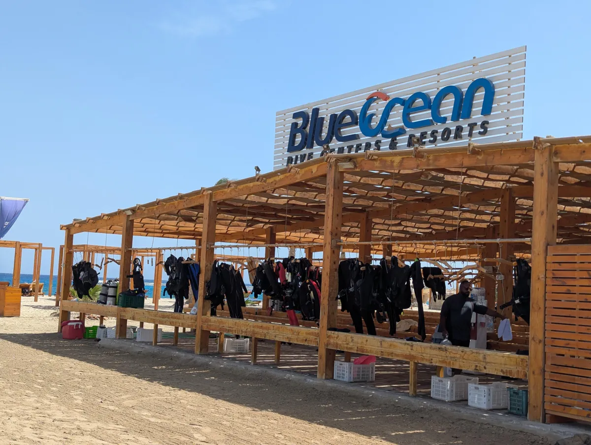 Tauchbasis vor Ort: Das "Blue Ocean Dive Center" befindet sich ca. 5 Gehminuten vom Hotelstrand entfernt und bietet alle möglichen Tauchgänge an. Besonders beliebt ist der Speedboat-Tauchgang nach Elphinstone, welcher schon um 5.30 Uhr startet, es gibt über den Tag verteilt aber auch weitere Speedboat-Tauchgänge oder man taucht selbst am Hausriff (Nord- oder Südriff). Die Uhrzeiten sind mit 8:30 Uhr, 11:30 Uhr und 14:30 Uhr übersichtlich strukturiert und ans Hausriff kann man ohne Guide zu jeder Uhrzeit.